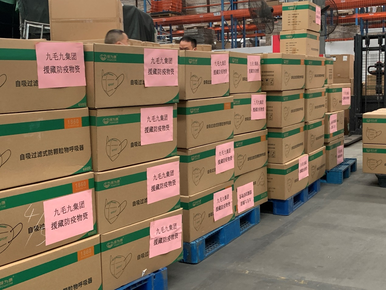 9月1日,九毛九集团员工前往政府指定的防疫物资集散点,进行口罩的清点和转运处理。这批6万只KN95口罩将会尽快发往西藏林芝市,为坚守一线投入战斗的广大医护人员和防疫工作者送去温暖。